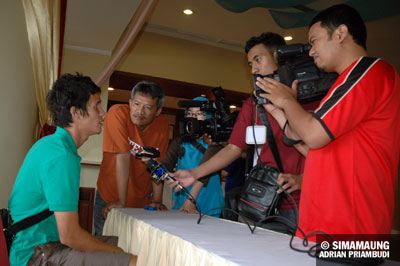 Bertempat di hotel Artayuda, Palembang pukul 14.00 siang ini, Baihakki yang mengenakan baju polo berwarna hijau lalu mengungkapkan kebahagiaannya bergabung denga Persib.