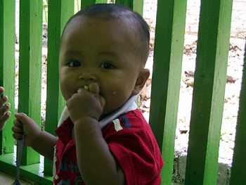 Ezwan agak kurusan sekarang, dibawa puasa kali ya ama ibunya .. bapaknya juga kucel amat hee nggak potong rambut :)